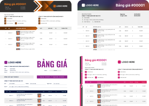 Bộ sưu tập các mẫu báo giá được thiết kế sẵn, tối ưu cho mọi ngành nghề. Dễ dàng tùy chỉnh logo, thông tin công ty,…
